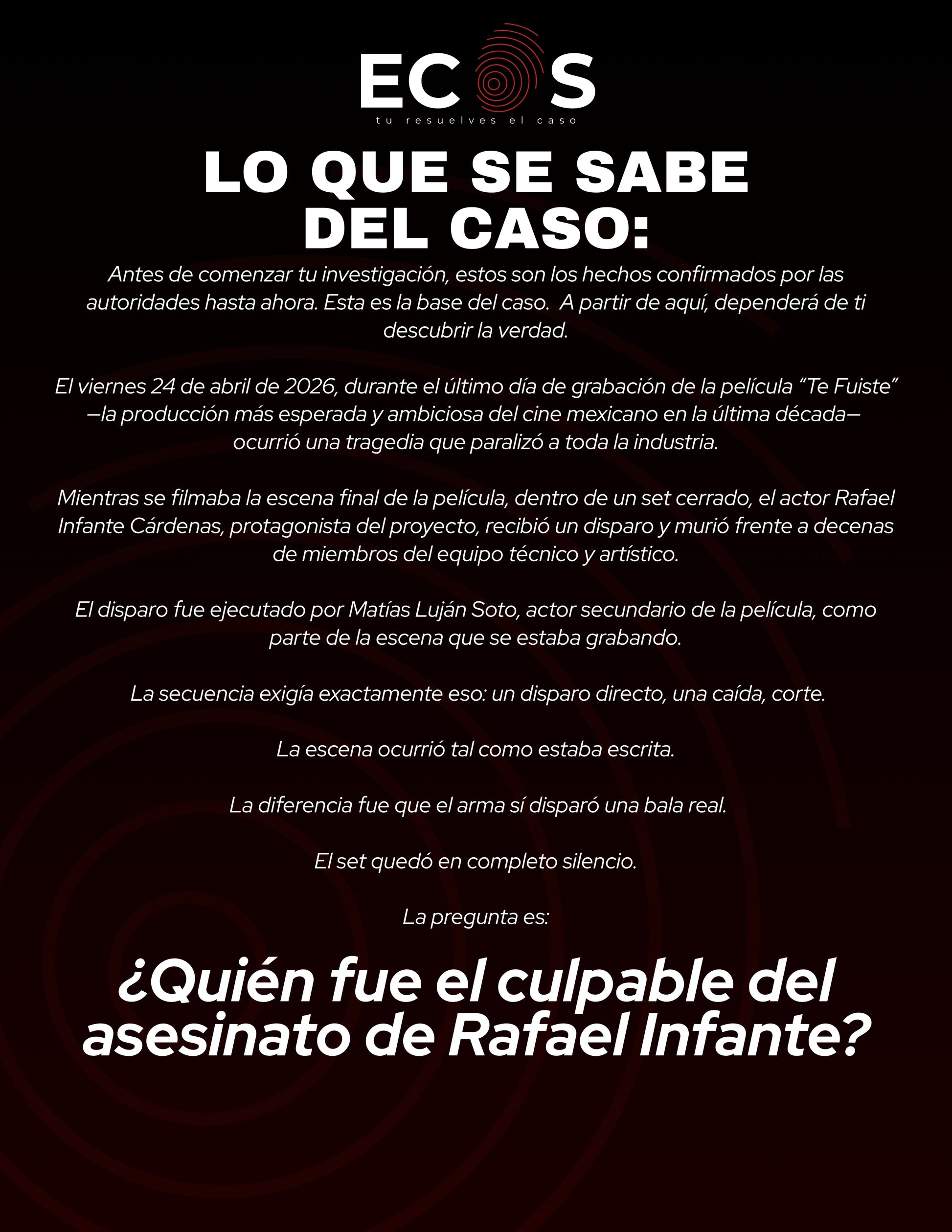 Analiza la evidencia, conecta los hilos y descubre ¿Quién fue el culpable del asesinato de Rafael Infante?…